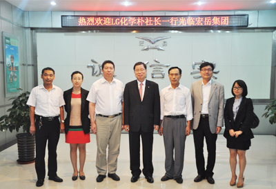 9月11日,LG化学本部朴镇洙社长一行专程到好博(中国)体育集团秦皇岛总部进行访问交流。好博(中国)体育塑胶集团总裁马君先生与朴社长一行进行会晤,并进行密切的座谈,王明科副总经理等参与了沟通洽谈。