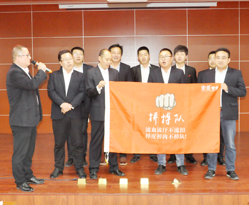 4月3日,好博(中国)体育集团营销誓师大会在营销中心热血开展! 全员参与,激情动员,好博(中国)体育销售精英们组成十个战队,并确立自己的队长、队名、队旗、队标及队呼。在大会上各战队“亮队型、展风彩、表决心”,队员们慷慨激昂的表态发言,点燃了营销人员的满腔热情。
