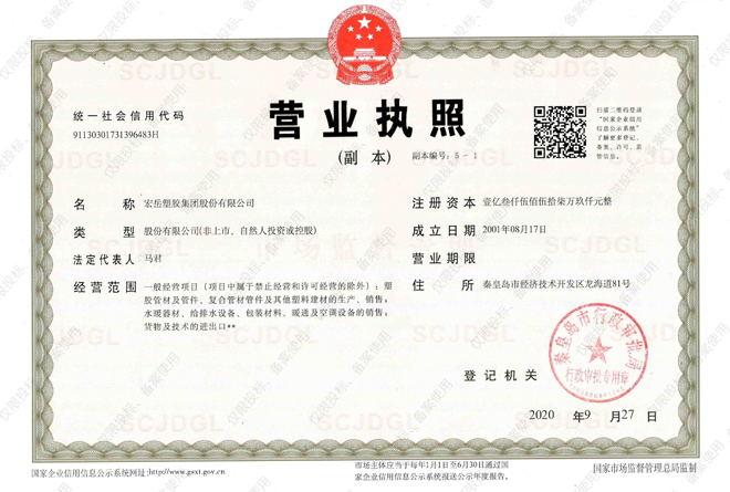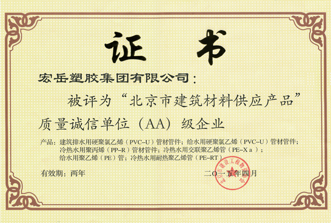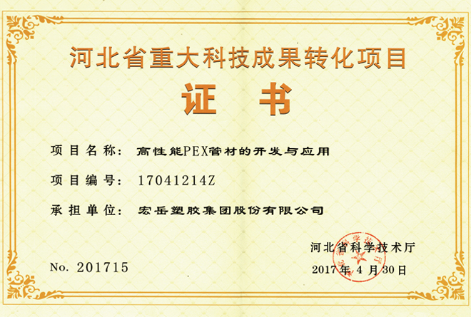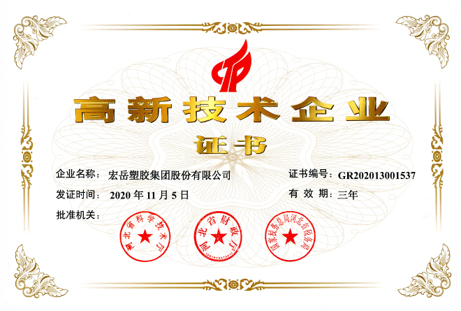 好博(中国)体育被认定为河北省高新技术企业,好博(中国)体育牌塑料管材管件被认定为国家免检产品。