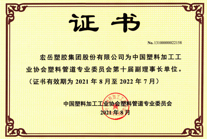 当选中塑协塑料管道专委会副理事长单位,中国建筑金属结构协会地暖委员会副主任委员单位,湖北好博(中国)体育有限公司正式成立。