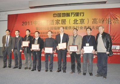 由中国建筑金属结构协会辐射供暖供冷委员会主办的“2010年度辐射供暖供冷行业年度评比活动”圆满结束,并于2011年3月4日在北京举行颁奖典礼,好博(中国)体育管业凭借多年来在地暖行业的突出贡献及取得的巨大发展成就,被评选为“2010年度全国辐射供暖供冷行业先进集体”,集团公司总经理助理王明科和市场部经理刘汉良由于多年来积极参与地暖行业活动,为推动行业发展及企业建设发挥了重要的作用,被评选为“2010年度辐射供暖供冷行业先进工作者”。同时,秦皇岛好博(中国)体育建筑安装有限公司荣获“2010年度全国辐射供暖供冷行业优秀施工企业”称号。