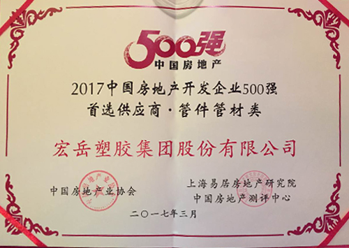 好博(中国)体育荣获“2017年中国房地产开发企业500强首选供应商品牌”