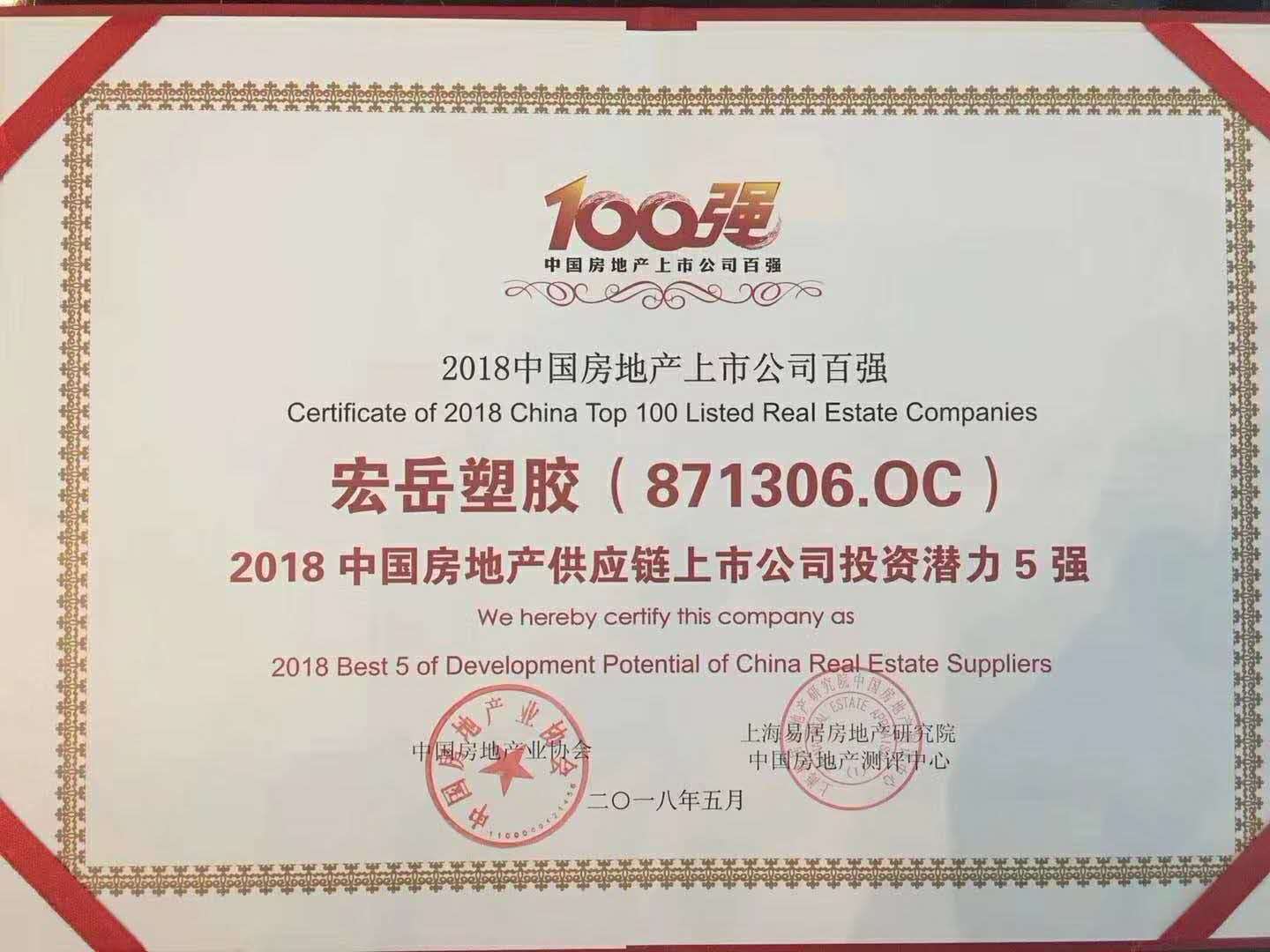 由中国房地产业协会、上海易居房地产研究院中国房地产测评中心联合开展的“2018中国房地产上市公司测评成果发布会暨金融创新高峰论坛”在深圳举行,好博(中国)体育荣获“2018中国房地产供应链上市公司投资潜力5强”。