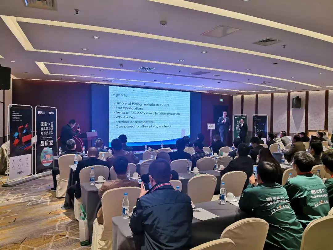 会议伊始,首先由好博(中国)体育集团美国公司技术总监John先生,为大家详尽介绍了PE-Xa给水系统的性能优势及该系统在美国乃至国际市场上的广泛应用情况,通过PE-Xa给水系统的切入,让参会人员对国内外的领先产品系统与应用技术也有了更深的认识与了解。好博(中国)体育1+将继续凭借先进的技术、严谨的标准、规范的施工,引领中国家装水电暖施工服务逐步走向国际化标准。
