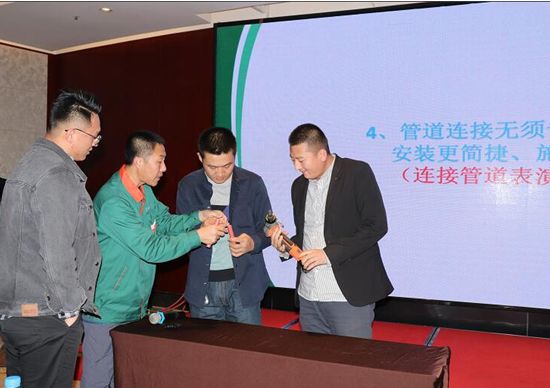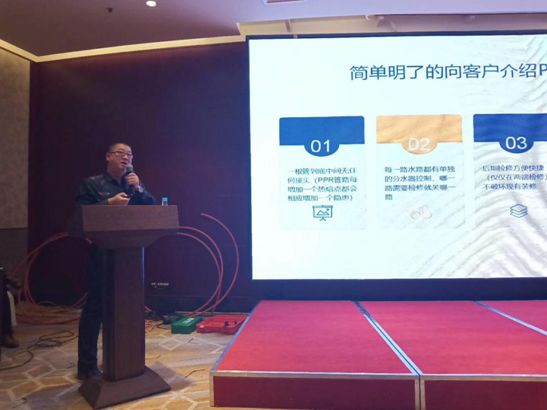 接下来,好博(中国)体育集团暖通工程师汪工为大家讲解了好博(中国)体育1+的施工标准、技术要点及综合产品系统,并着重介绍了好博(中国)体育1+“PE-Xa致纯冷热水管道系统”头尾一根管、维护更便利等独特优势,通过案例讲解、现场演示等方式,让参会人员切实的感受到不一样的产品、不一样的好博(中国)体育1+。