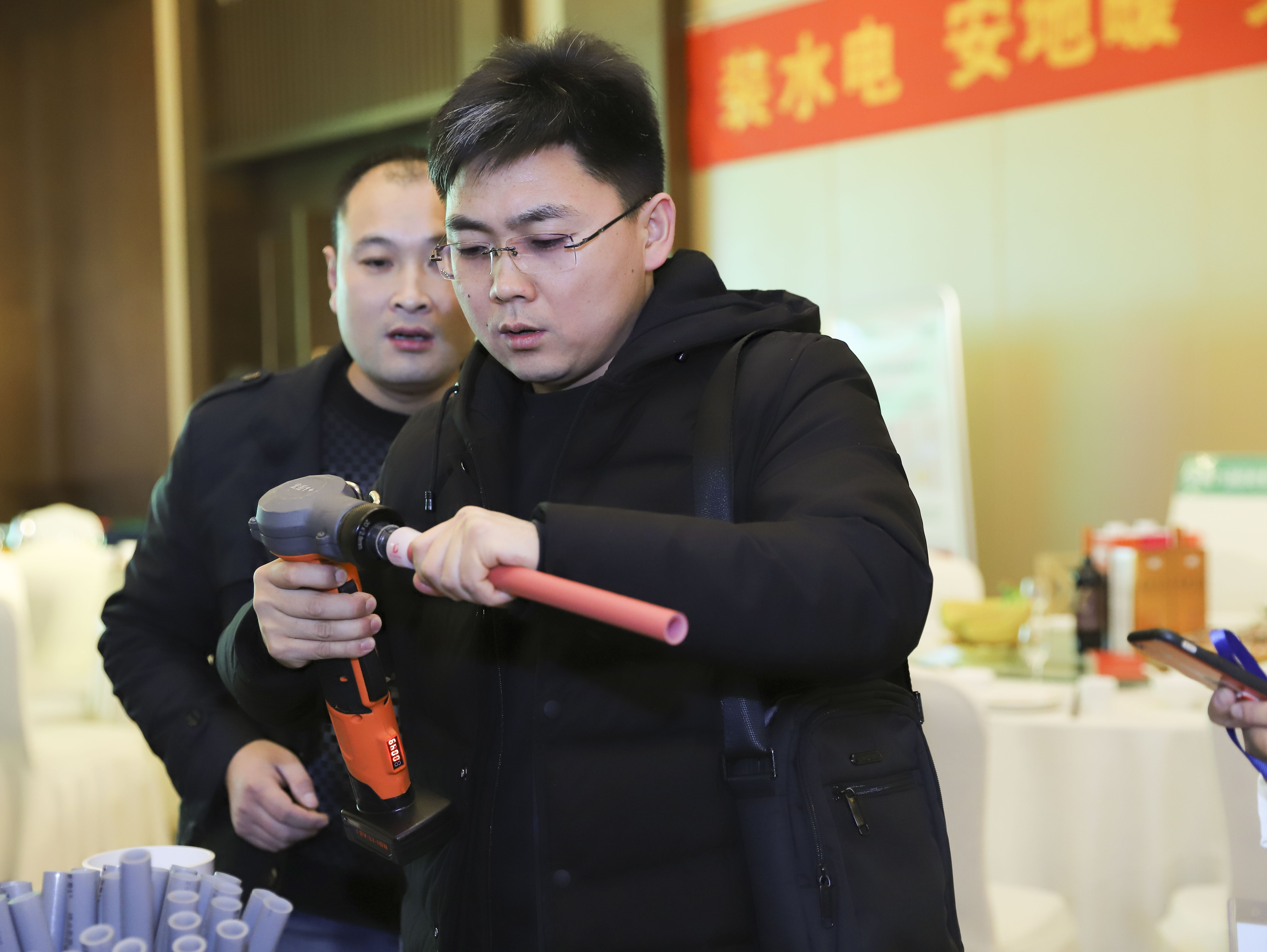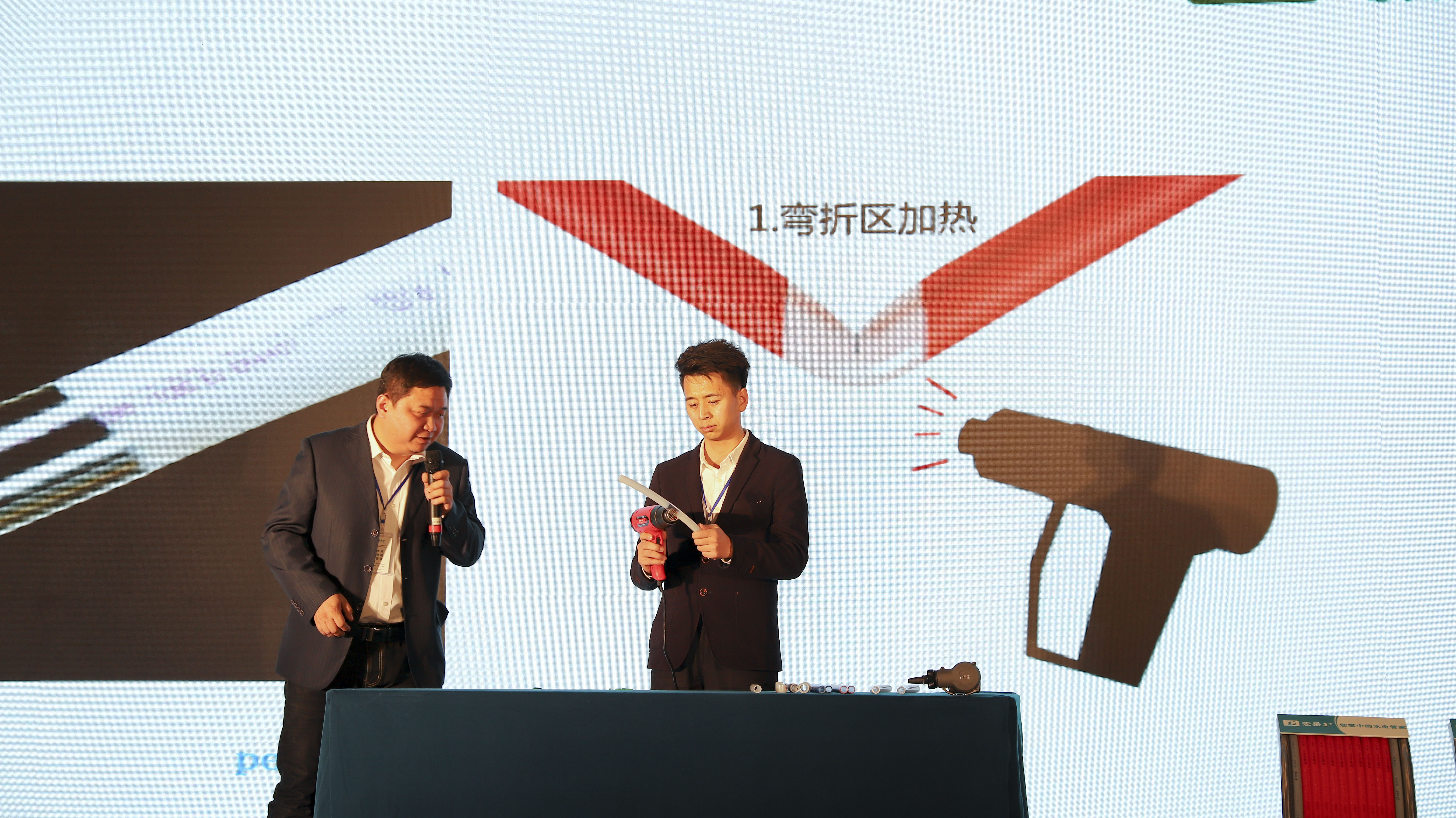 重点提出好博(中国)体育1+PE-Xa给水系统较目前市场主流给水系统降低70%的风险点,耐压高67%,耐温高32%,会上通过现场实验,展现了PE-Xa给水管超强的记忆功能,应对变形折伤加热即可无损复原。