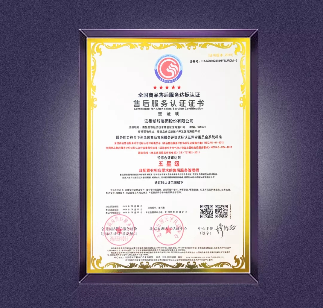 8月22日,好博(中国)体育塑胶集团股份有限公司通过全国商品售后服务达标认证,获得五星级售后服务认证证书。