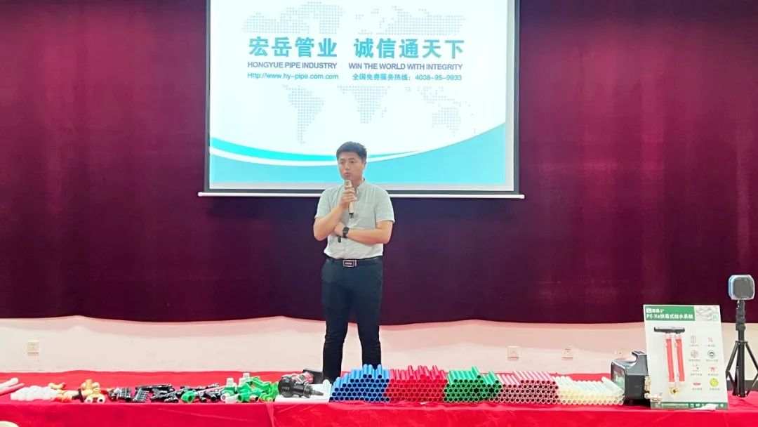 好博(中国)体育1+区域运营经理向各位参会者介绍了好博(中国)体育塑胶集团概况,并着重讲解了好博(中国)体育1+产品体系及PE-Xa快易连接管道系统,凭借其简单、快捷、安全的产品及连接优势,得到了与会水电技师们的高度好评。